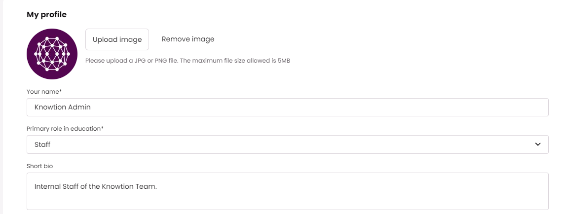 Updating your profile will help others get to know you and make using Knowtion easier.